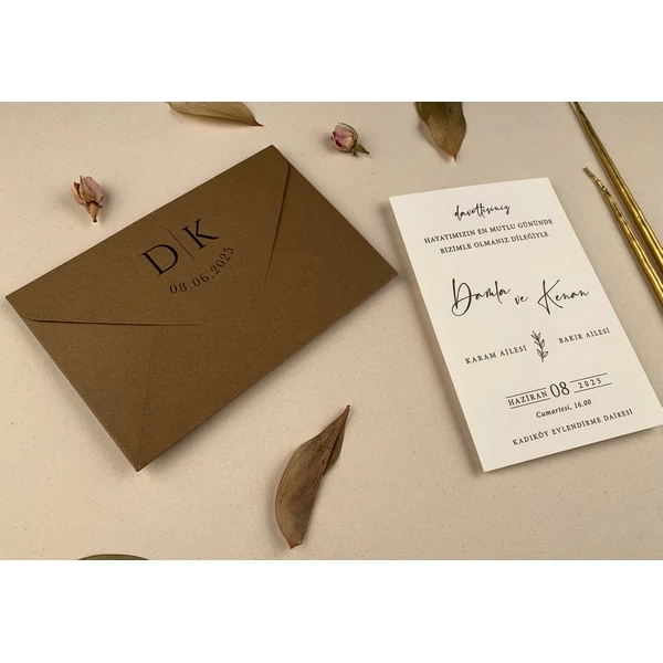 - A csomagolás egyedi tervezésű borítékot tartalmaz, amely tökéletesen kiegészíti a meghívó eleganciáját.