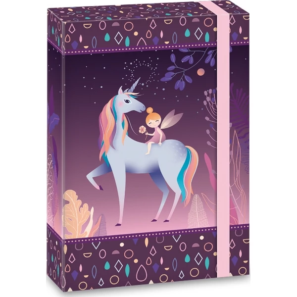 Egyszarvús grafikával díszített A/5 méretű füzetbox alsós lányoknak. Füzetek, iratok tárolására tökéletes.