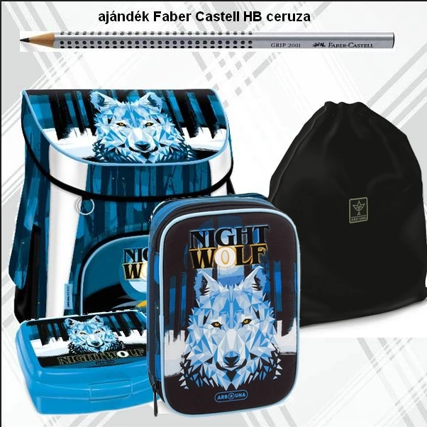 Iskolatáska szett Ars Una 23 Nightwolf Farkas (5257) iskolatáska, tolltartó, tornazsák