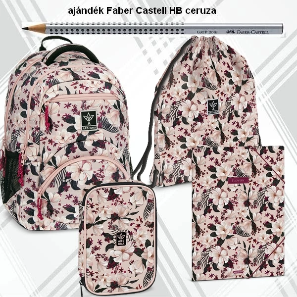 - A szett része az elegáns Flowery Pink mintás iskolatáska, amely stílusos és praktikus választás minden diáknak.